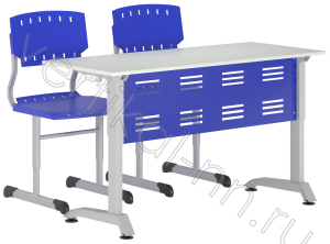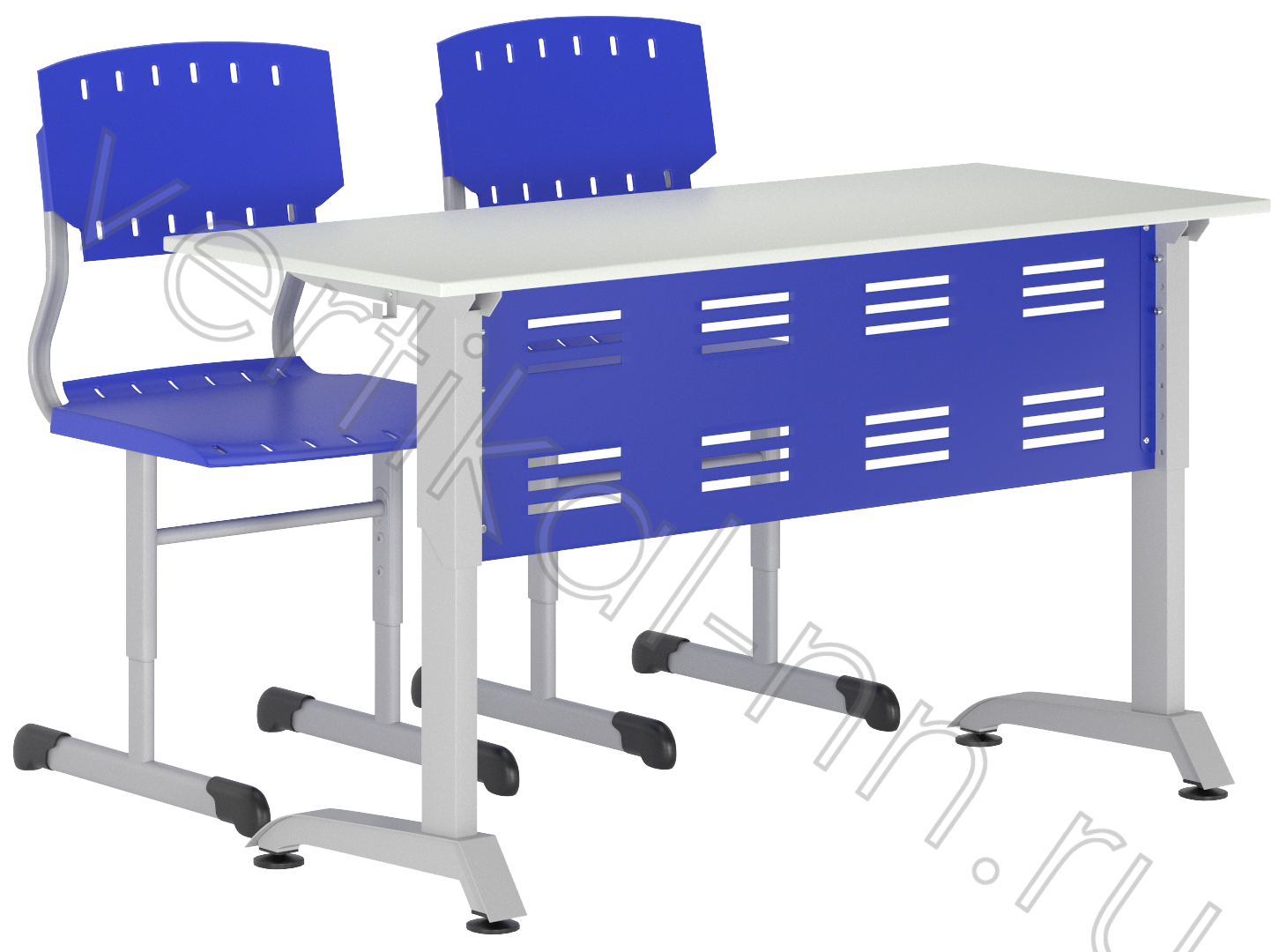 Размеры, мм: Ширина: 1200 Глубина: 500; Высота: гр. роста 520-580-640 мм (2-4 гр.); 580-640-700 мм (3-5 гр.); 640-700-760 мм (4-6 гр.); 700-760-820 мм (5-7 гр.) Стол ученический, 2-х местный изготавливается на металлическом каркасе с прямоугольной столешницей и передней перфорированной панелью. Материал столешницы - ламинированная плита ДСП толщиной 16 мм (25 мм по запросу), класса эмиссии Е1. Цвет по согласованию. Кромка ПВХ толщиной 2 мм. Возможен вариант столешницы со скругленными углами.