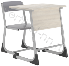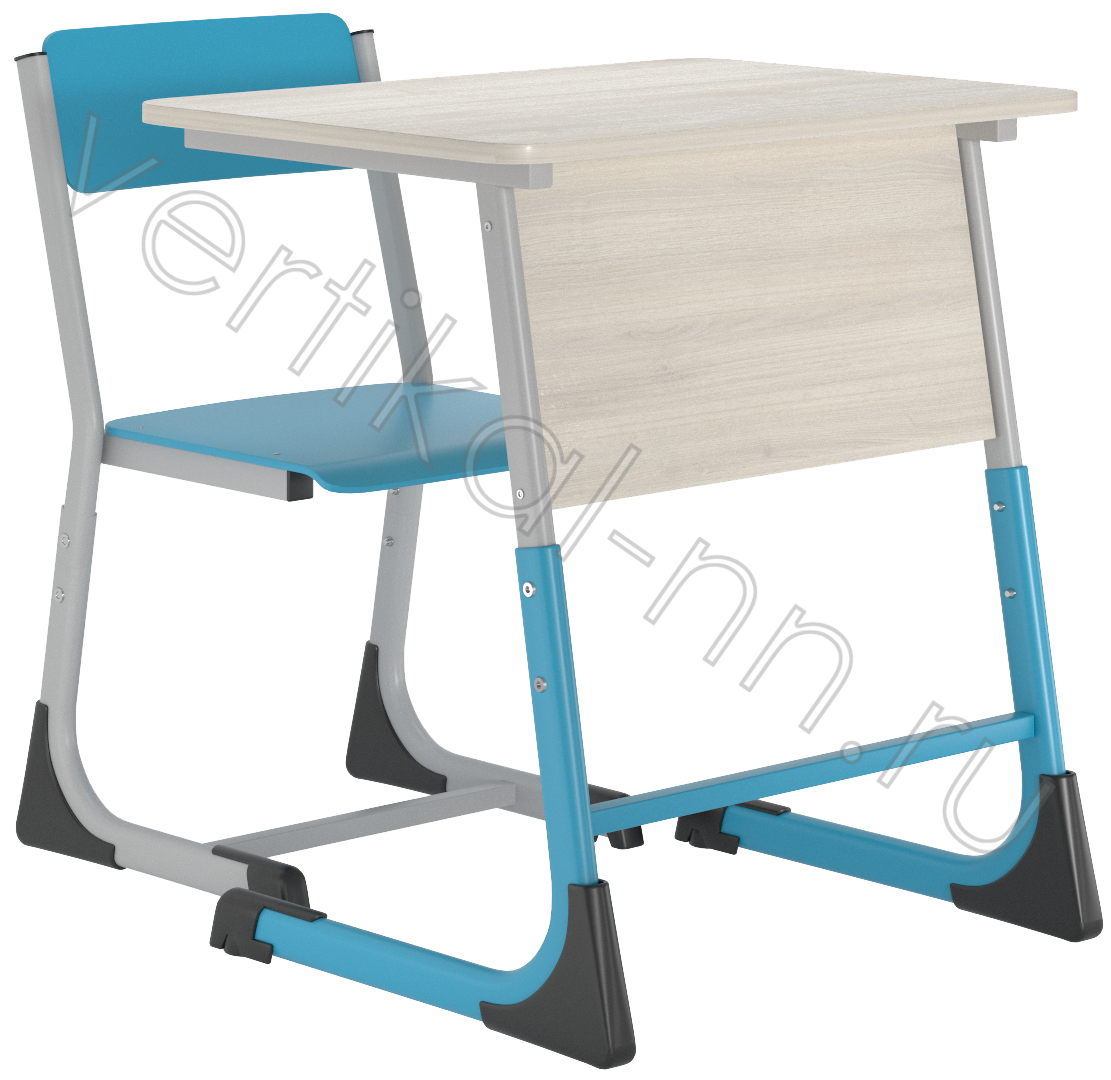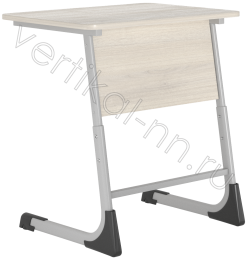 Размеры, мм: Ширина: 600 Глубина: 500 Высота: гр. роста 520-580-640 мм (2-4 гр.); 580-640-700 мм (3-5 гр.); 640-700-760 мм (4-6 гр.);700-760-820 мм (5-7 гр.) Стол ученический, 1-местный изготавливается на металлическом каркасе с прямоугольной столешницей и передней панелью. Используется ламинированная плита ДСП толщиной 16 мм (возможен вариант толщины столешницы - 22 мм, 25 мм). Цвет "Клен", Серый, Белый, "Ясень Шимо", "Рамух белый", "Дуб Сонома", "Бук" или нестандартный цвет по согласованию. Изделие облицовано кромкой ПВХ толщиной 2 мм. Для изготовления используются материалы, разрешенные к применению органами санитарно - эпидемиологического надзора. Металлический каркас изготовлен из цельногнутой плоскоовальной и квадратной труб.Толщина стенки каркаса 1,5 мм. Каркас окрашен износостойкой порошково-полимерной краской. На свободных концах труб установлены заглушки из ударопрочных полимеров. Стойки имеют полимерные подпятники, не повреждающие напольных покрытий. Стандартные варианты цвета каркаса: серый, белый, бежевый или нестандартный цвет по согласованию.