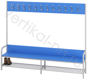 Вешалка гардеробная односторонняя с мягким или жестким сидением (по запросу) и полкой под обувь